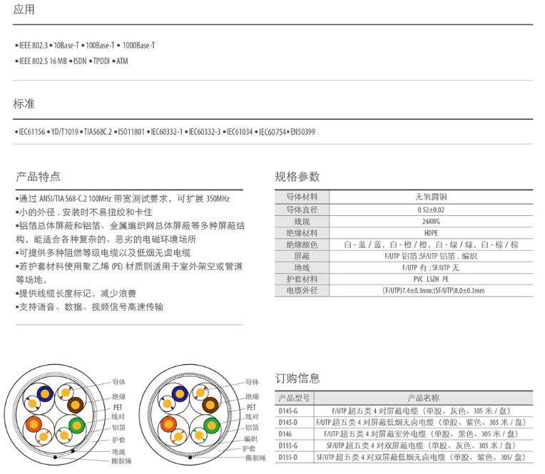 一舟 F/UTP CAT5e 超五类单股屏蔽电缆